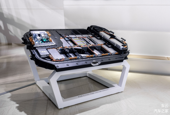 在用户关注的电池和续航方面,奥迪e-tron搭载的锂离子蓄电池NEDC续航里程达470公里。该蓄电池标定电压为397伏。奥迪e-tron的蓄电池系统放置于车厢的下方。蓄电池的铝外壳内由36个电池模块组成,每个电池组的尺寸约为普通鞋盒大小,总体为两层布局,下层总体较长,上层总体较短。这一电池组封装方式,一方面保障了功率输出和能量密度,另一方面降低了用户在电池出现故障的时候,更换电池的成本。