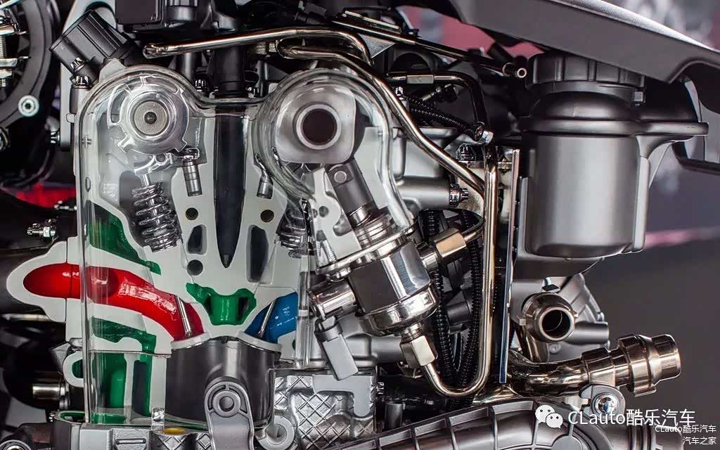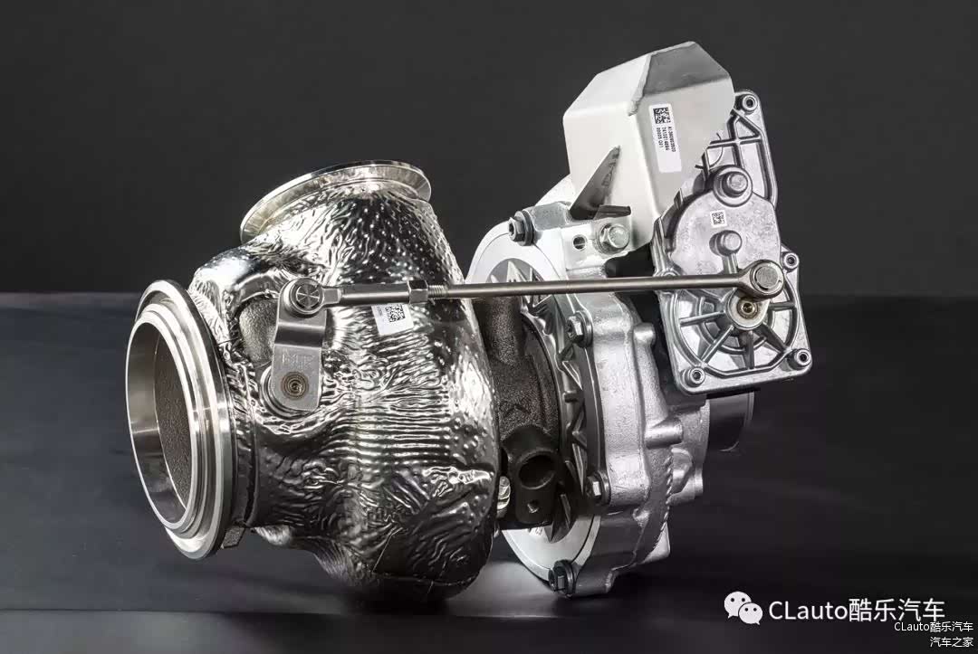 涡管采用两个独立流道,每个流道负责一对气缸,这种双涡管设计想必老铁们都非常熟悉了,废气脉冲不会相互干扰。整套涡轮增压器由水、油和空气三种介质冷却,在发动机前部会有独特的装置引导。