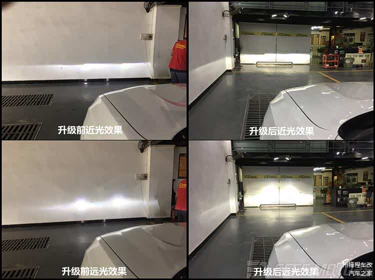 升级前后灯光效果对比,显而立见四透镜的强大,灯光效果瞬间提升3倍以上,耀眼的光芒让您成为黑夜中最“亮”的焦点。