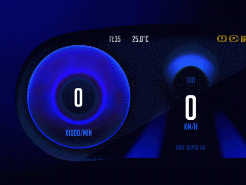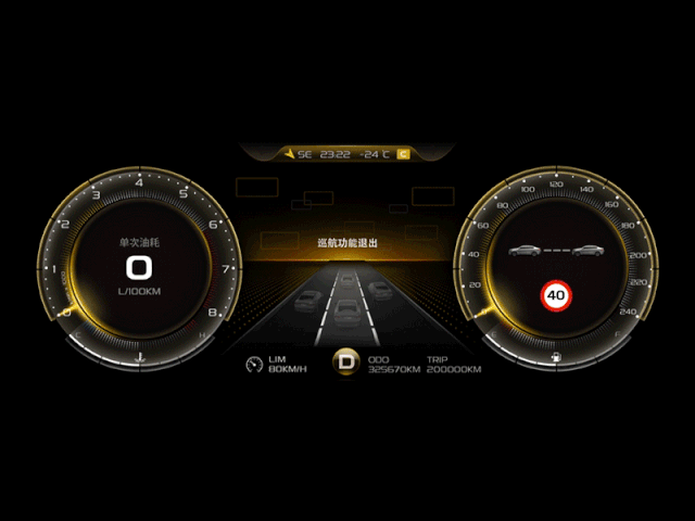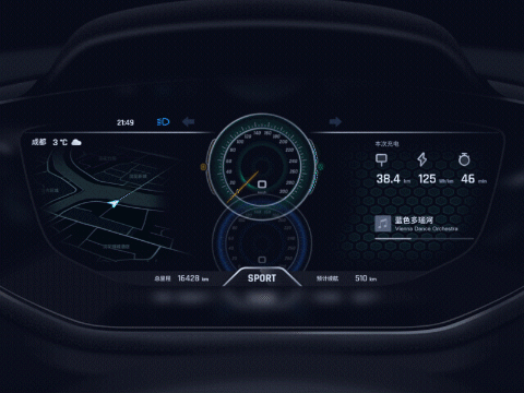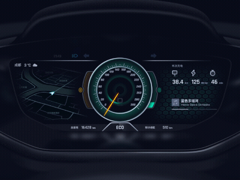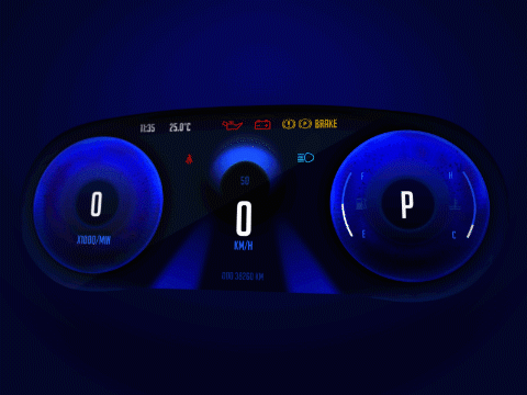 开关机的动效设计让仪表的界面更加丰富多彩,启动车辆时,跳跃进入视线的色彩,视觉冲击力更强,给用户带来更好的体验。