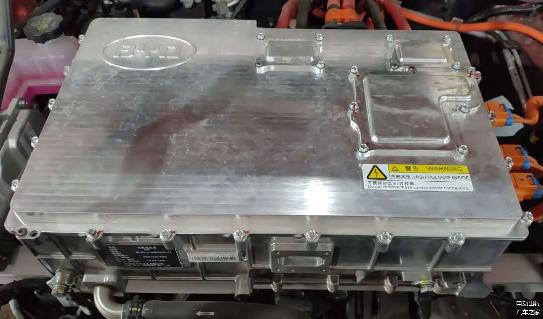 在充配电总成和电机之间就是电机控制器。唐EV使用比亚迪独家的高压电平台,电压超过700V。能够使用如此高的电压,是因为比亚迪拥有独家的IGBT4.0原件, 而其他品牌车型受制于IGBT能力的不足,仍在使用400V低压平台,在效率上不如唐EV。