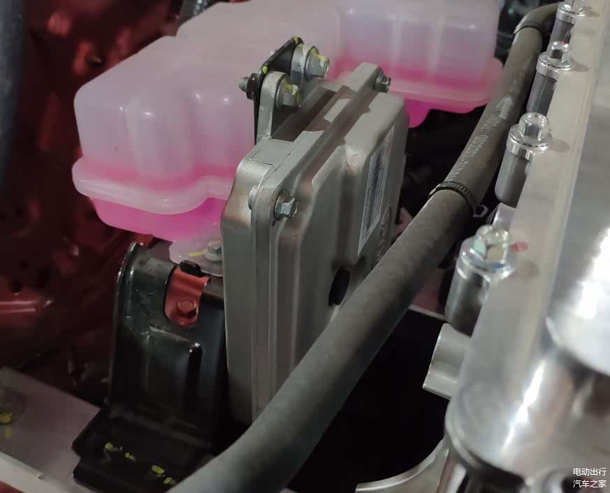 在充配电总成左侧,电池冷却液水壶旁边的是电池控制器。