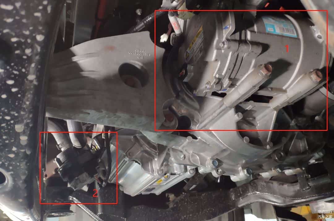 与永磁同步电机一同承托于副车架之上的还有空压缩机泵,以及各种冷却液水泵。之所以将各种泵类配件布置在副车架之上,主要是利用副车架衬套起到减震作用。虽然永磁同步电机震动较小,但各种泵类配件在工作时仍有震动,依靠衬套减震,能大幅度提升NVH性能。