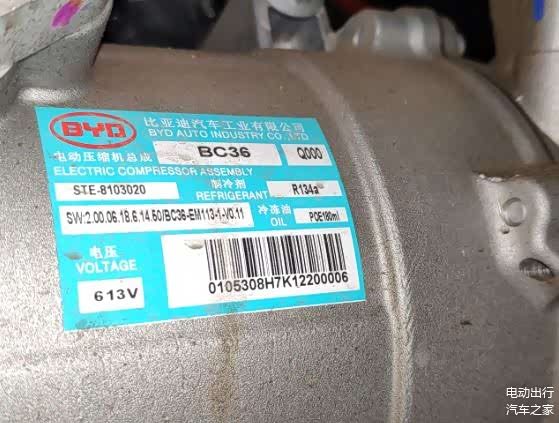 由于使用高电压平台的关系,唐EV的空调压缩机使用比亚迪自产的BC36型压缩机,该型号压缩机的工作电压高达613V,较第三方配件商同类产品高出一倍。在通用配件的选择上,如各种水泵、电子扇等,唐EV采用博士等大厂出品的配件。