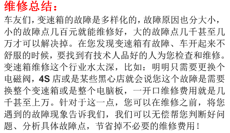 相信车友们都知道,变速箱油对于变速箱绝对是堪比血液一样的东西了,变速箱油有着润滑、减少摩擦、防腐蚀等作用。然而变速箱油也并非一成不变的、一直在变速箱内,没有停止。它也是和饮料、化妆品一样,是有“保质期”的。等到了这个“保质期”后,内部有益物质沉淀,其作用大大下降,这个时候变速箱内部机械配件因为缺少了油的作用,运作时候会很吃力的。而变速箱在机械出现故障时候,机械与机械之间难免会摩擦出铁屑杂质出来,这些杂质与油一起运作,长此以往后,可想而知,机械故障只会越来越严重,在流经液压控制单元那样精密配件时候,也是会出现卡滞的情况的。避免阀体故障的办法:定期的在车子行驶三年或六万公里时候,更换变速箱油,减少阀体故障的概率,保证变速箱内部正常的运作秩序的同时,也可以延长变速箱的使用寿命!