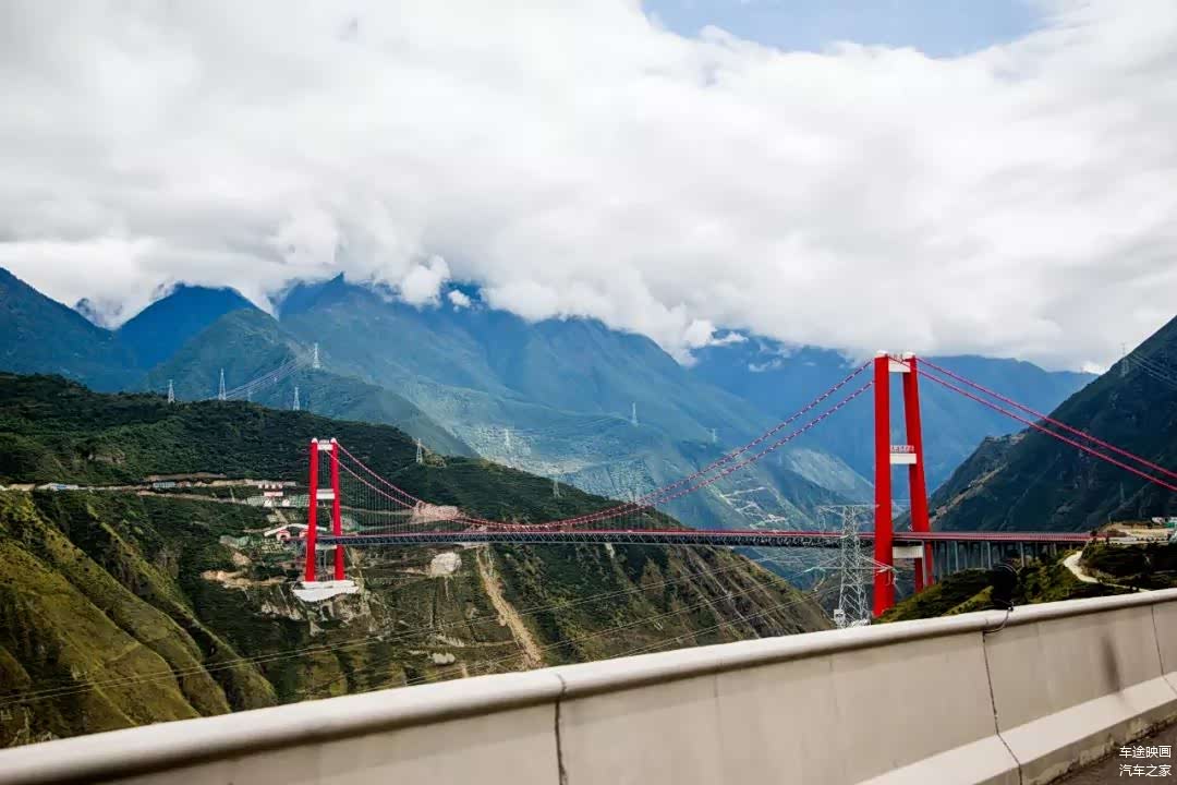 在临近泸定的路段,主跨达到了1100米的大渡河大桥,横跨峡谷,高达数百米的落差,成为了中国“基建狂魔”的又一超级工程。