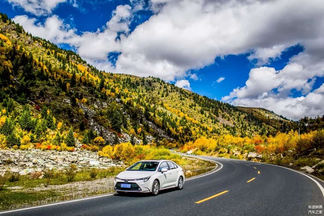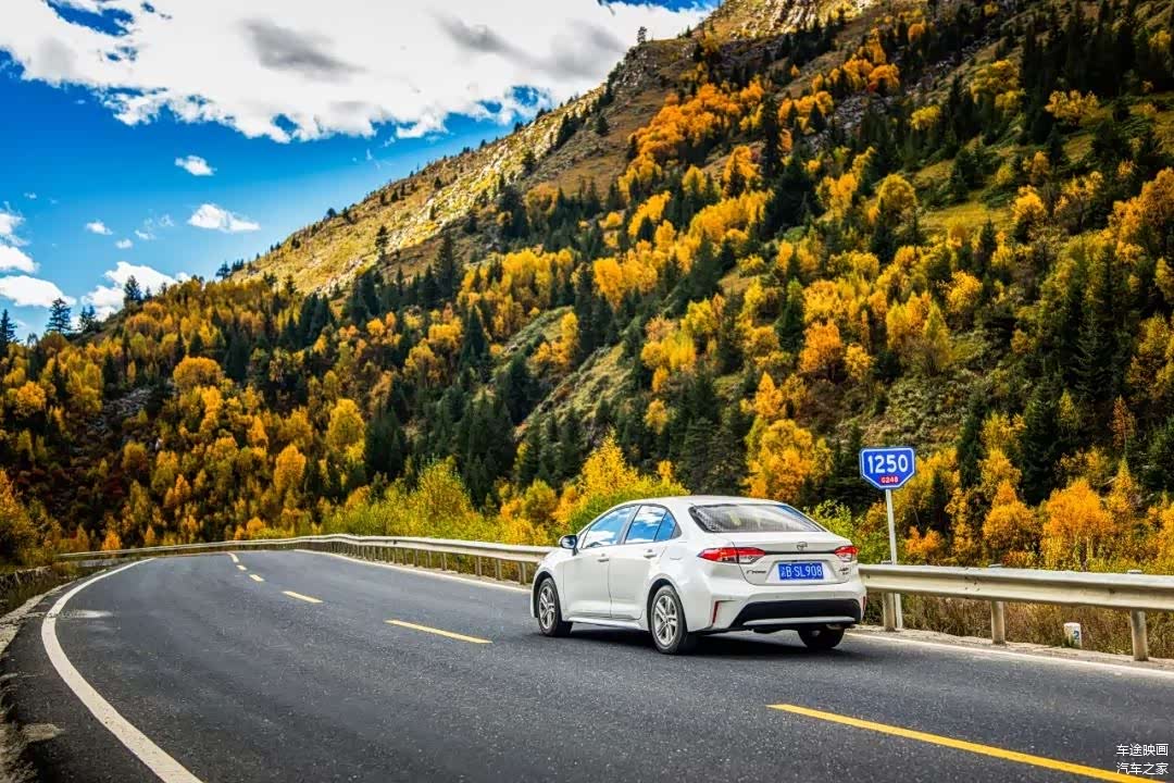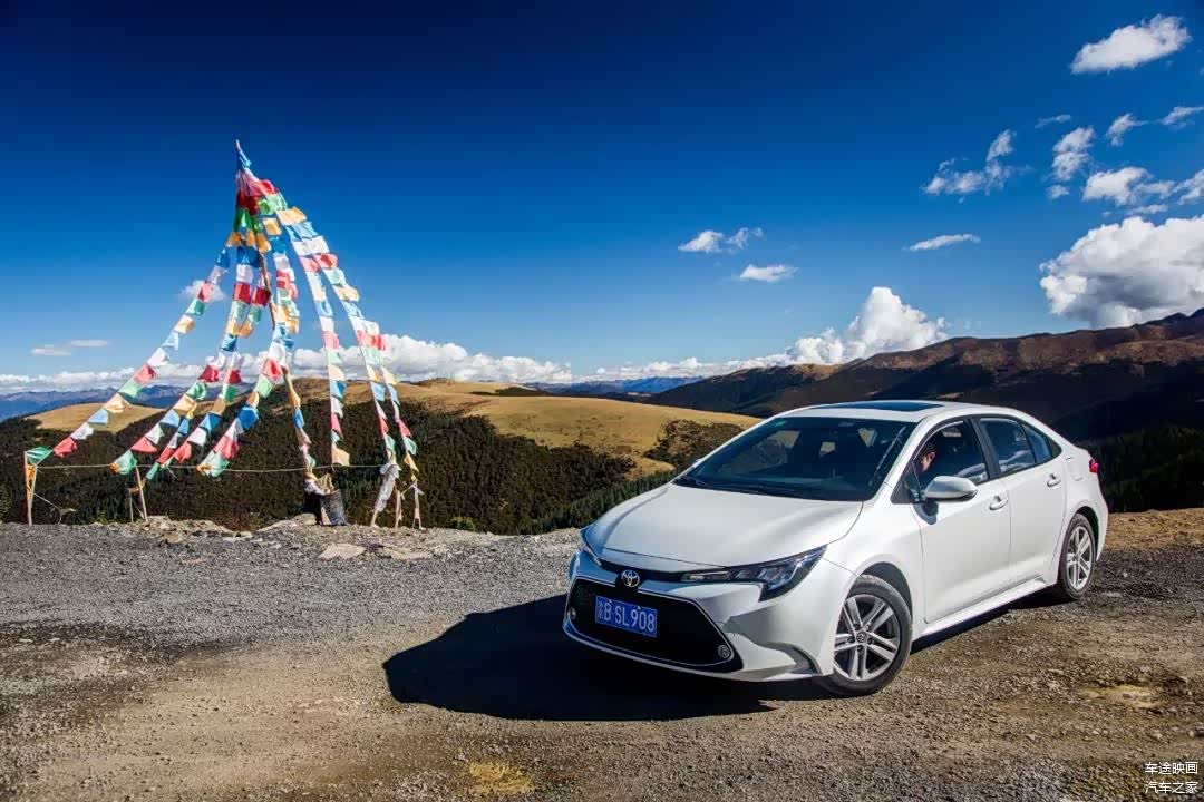 天公作美,我们驾驶这台全新雷凌,在一路上并没有遇到塌方、修路、大雪等突发路面状况。川藏公路在这一段路况不错,翻山路段不算艰难,但大车很多,高原路段上动力并不能100%响应,超车还是需要留出更长的可视距离。