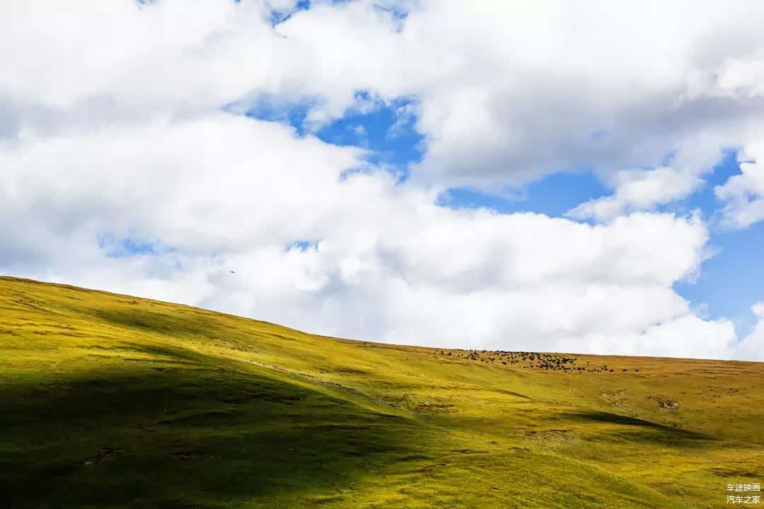 翻过卡子拉山口,海拔逐渐的下降。此时,茂密的森林被草原所替代,远处的山坡上的牦牛与蓝天,高度还原了XP桌面,区别在于草原已经变黄。