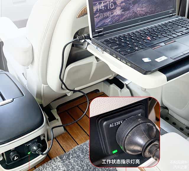 对于后排乘客,扶手箱除了可以提供USB充电和储物抽屉外,还配备了点烟器和220V电源插座。如果再配上后排小桌板,打开笔记本,插上电源,就可以开启办公模式了。