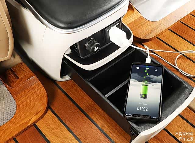 此外,中央扶手箱不仅可以提供收纳功能,还可以方便给手机充电。前侧的小平台可以实现无线充电功能,即放即充,再也不用插线拔线,非常便捷。无线充电是别克GL8原车高配车型上都没有的功能,这就是改装的优势——忠于原车,但又超越原车。