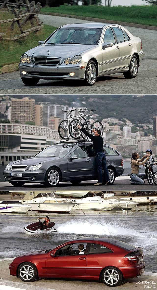 W202 C-Class在2000年停产后,Mercedes-Benz推出全新W203 C-Class,开始大量注入年轻且新鲜的元素,而且除了同样拥有4门房车及5门旅行车型C-Class Estate (原厂代号S203) 外,2000年9月还增加了主打年轻形象的3门掀背车款C-Class Sports Coupé 。
