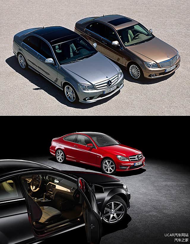 C-Class 小改款后则是外观与现行CLS-Class拥有更为相似的家族面貌。而挂上性能型号的C63 AMG车款,更首度配置了6.2升V8自然进气引擎,且同时拥有四门房车、五门旅行车及双门三种选择,另外更在2011年7月,推出了终极性能版本的C63 AMG Coupé Black series车型。
