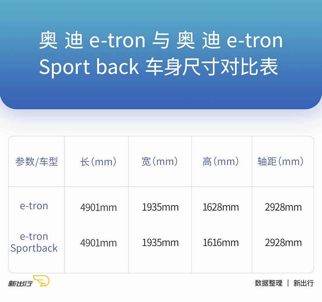 奥迪 e-tron Sportback 车身长、宽以及轴距和奥迪 e-tron 保持一致;