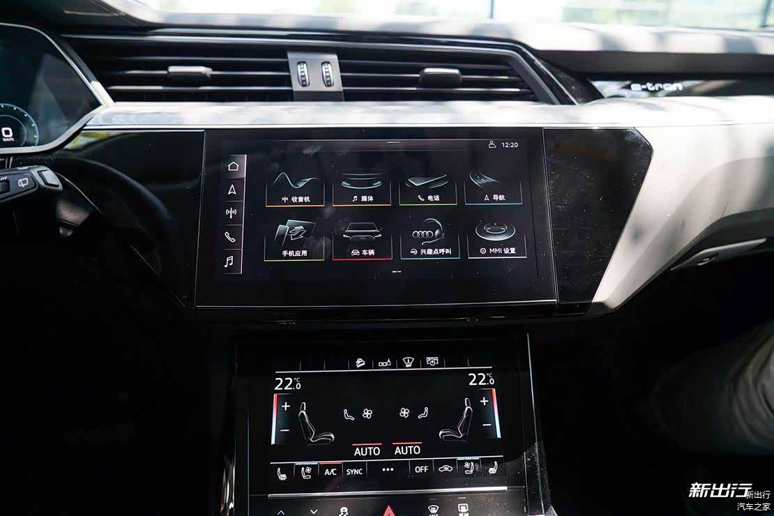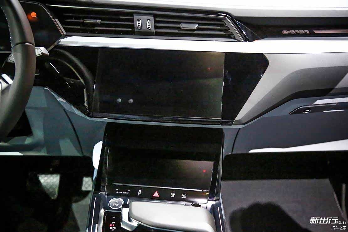12.3 英寸全液晶仪表盘、官方宣传的 12.1 英寸上方中控屏(e-tron 为 10.1 英寸)、8.6 英寸下方中控屏。其中,中控台上方的 12.1 英寸的触控屏负责操控娱乐系统以及车辆功能设定,下方 8.6 英寸的触控屏主要负责空调系统的操作。