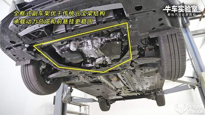 全框式副车架的出现,的确让人比较惊喜。一般这个价位的车型,都采用传统的元宝梁结构,简单实用且成本低。全框式副车架可以更好的承载发动机变速箱,前悬挂也可以更稳固的安置。未来全框式结构必然成为主流。