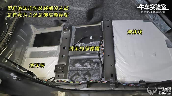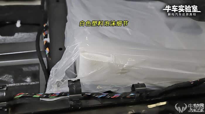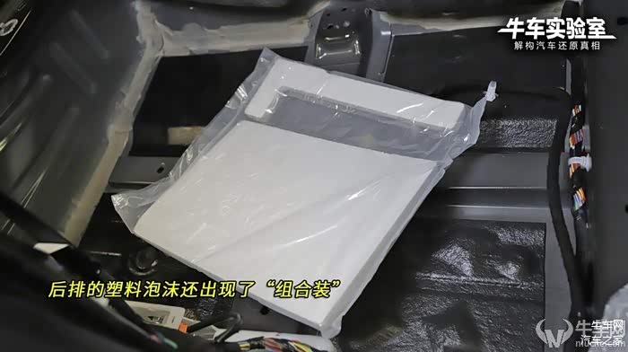 后排的塑料泡沫,还很贴心的根据地板形状,设计了“L”形状造型,一大一小“组合装”,很是和谐。不知道塑料袋在行驶中,会不会因为脚踩地毡产生摩擦,发生异响。