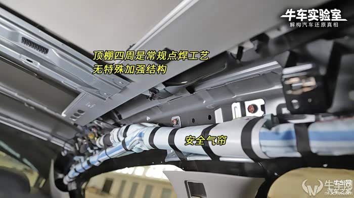 轩逸的车门和车顶设计在同类产品中算是中规中矩,车门内安全防护结构是比较落后的圆形钢防撞梁,这也是日系车惯用的。车顶没有隔音止震贴,加强筋也比较单薄。