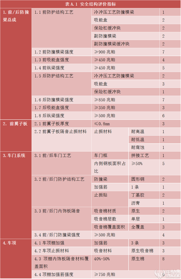 评分细则说明:拆解评分表格,仅列出车辆得分项(隐去与车辆无关的未得分项目)。完整评分体系涉及到标准保密文件,如需获取相关信息,请联系牛车网市场部。