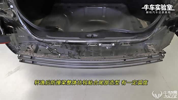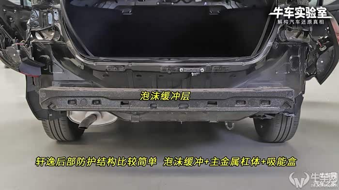 总结:第14代轩逸在前部、后部防护结构上,总体安全构造比较完整,前部具备主防撞梁和副防撞梁,后部为一道防撞梁,前后杠体都带有缓冲层。但是在细节设计上,吸能盒缺失压溃诱导槽,前杠体只有底漆层。能看出来,设计者想把产品往好了做,但是出于利润的考虑,还是有一些妥协,最终就造成了一个高不成低不就的前后防护结构。