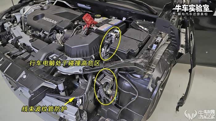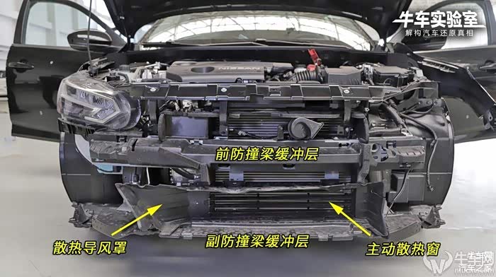 日系车以往的薄弱环节,在近几年的确进步明显,比如防撞梁的设计方面。本次拆解的轩逸,其前部防护结构比较完整,出现了两级防护设计,但是在细节设计上还是有欠妥之处,下面我们详细解读。