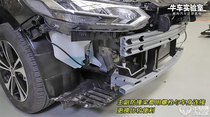 轩逸的前部主副防撞梁都采用螺栓与车身连接,这也是比较主流的设计。有部分低端车型采用直接焊接的方式,不利于碰撞后的维修更换。