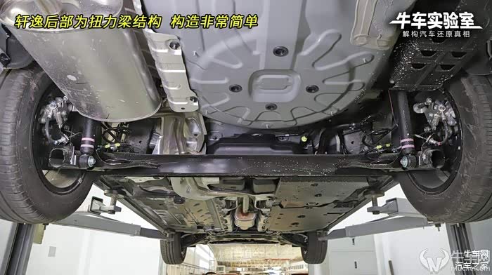 轩逸的后部扭力梁结构也是非常的简单,没有任何多余的组件,简单至极。