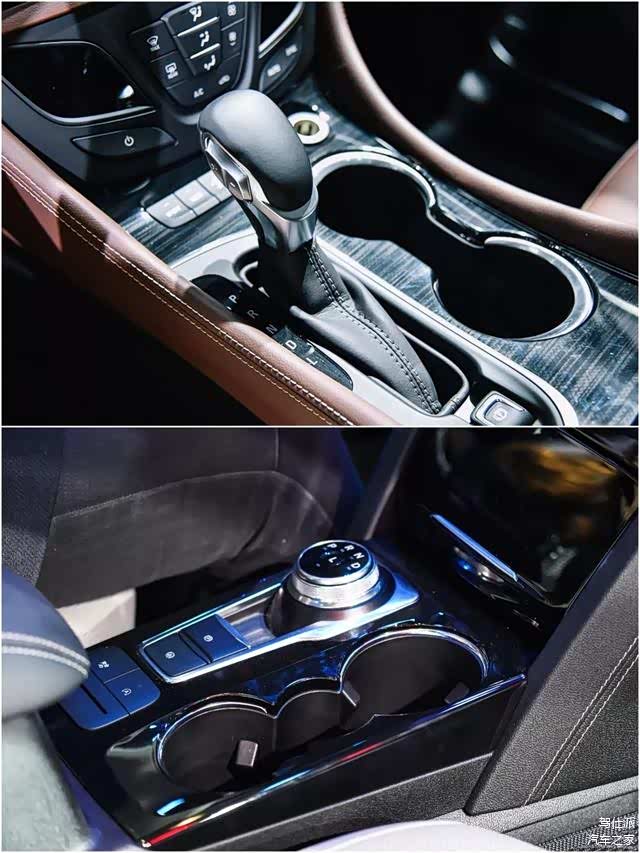 全新福特锐际的电子换挡杆无疑在操作体验上占优。不过无论两车采用何种换挡方式,别克和福特的内饰设计师都在换挡机构的右侧设计了巨大的杯座,而全新福特锐际空调控制区下方还另有一块储物空间,相较而言在前排储物上更有优势。