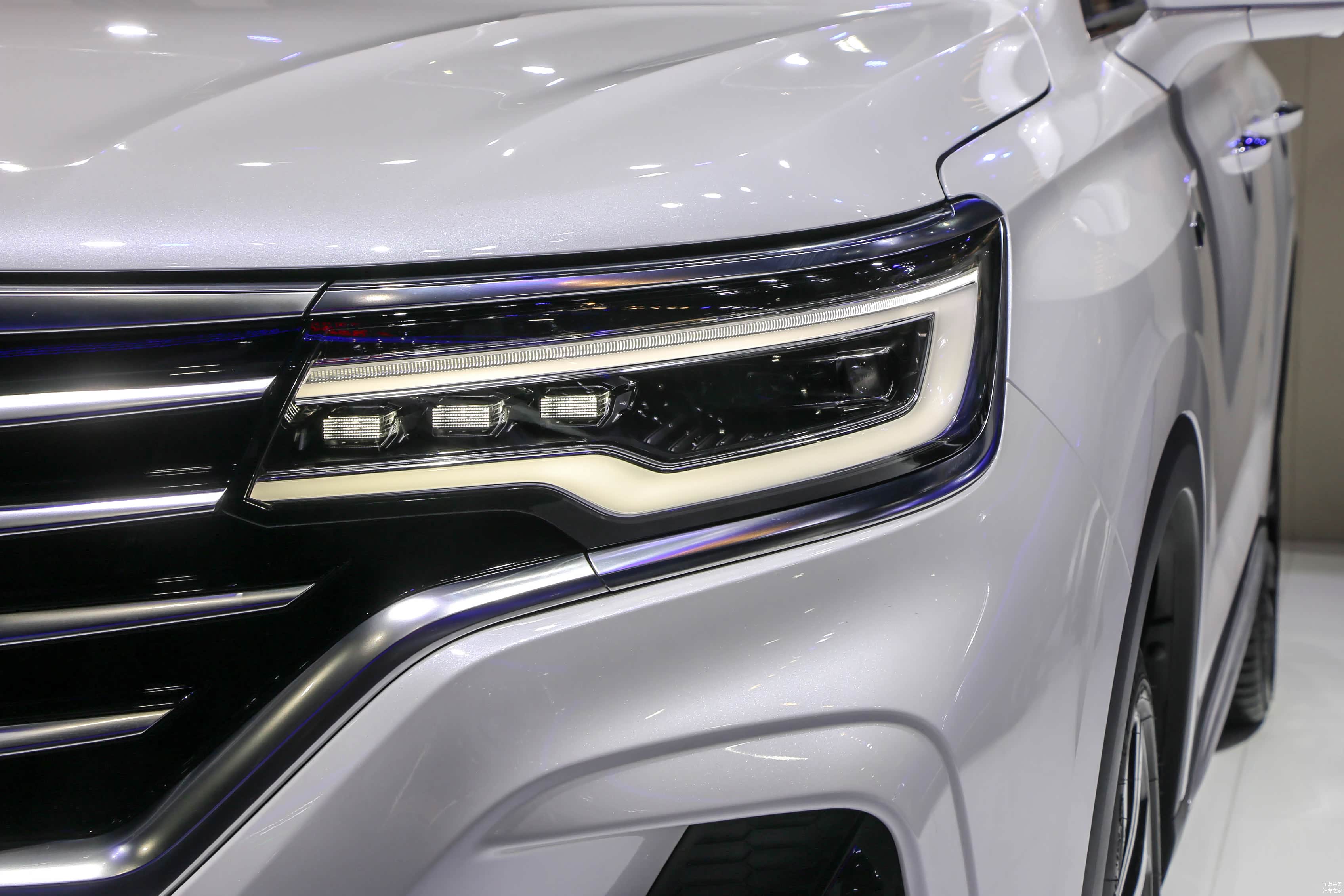 新车前大灯组内部的双横幅灯带与中网镀铬饰条相连,内部采用矩阵式全LED光源。