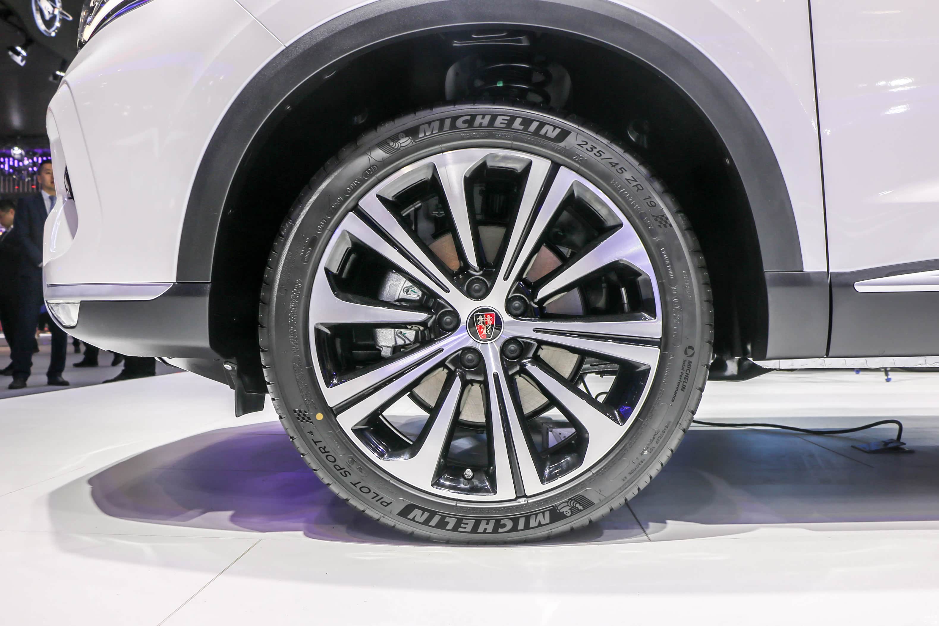 双色多辐式19英寸铝合金轮圈与燃油版高配车型上的保持一致,看上去显得更为精致,与其匹配的是规格为235/45 R19的米其林PS4运动型轮胎。