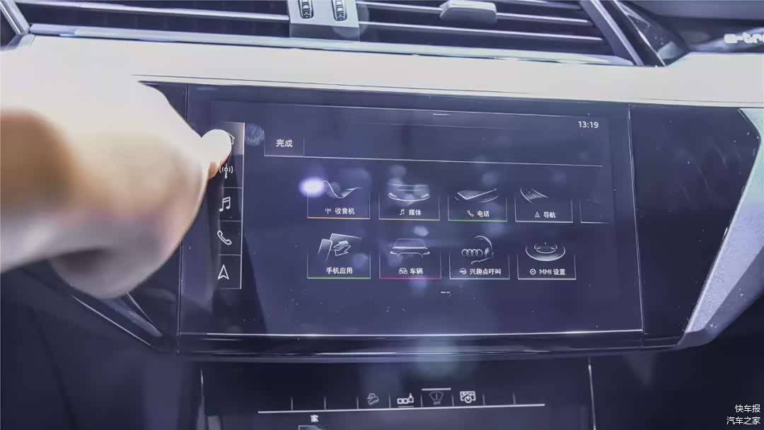一进去奥迪内饰,这种熟悉感就如同你去到一个别墅区,发现每一家的内饰都差别不大,但能让你记住每一家里面都装了一大堆科技感十足的家用电器。此前我对这些集成式大屏操作是非常有抵触的,但奥迪加入不少震动反馈,反应也很及时,类似于iPhone7的Home键质感,感受会比一般的物理按键更细腻。