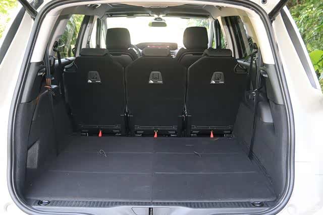 第二排座椅皆可独立滑移,还有前排椅背的小餐桌可以使用非常方便,要进入第三排相当轻松,因为第二排座椅可以直立掀起而且操作简单,第三排可以收折并可收纳进行李厢底板内,创造出相当多元的空间利用,在五人座的情况下,后厢即能拥有645L的充足置物空间,若将后两排座椅向前移并全数放倒,最大可创造出2181L的超大容积,而且中央扶手座还可以机动性的搬除,放置超长型物品也不成问题。至于第三排到底好不好坐,简单来讲在5+2的配置下它就是备而不用或是比较适合小朋友使用,以笔者超过170cm的身高为例,就会稍嫌有些拥挤。