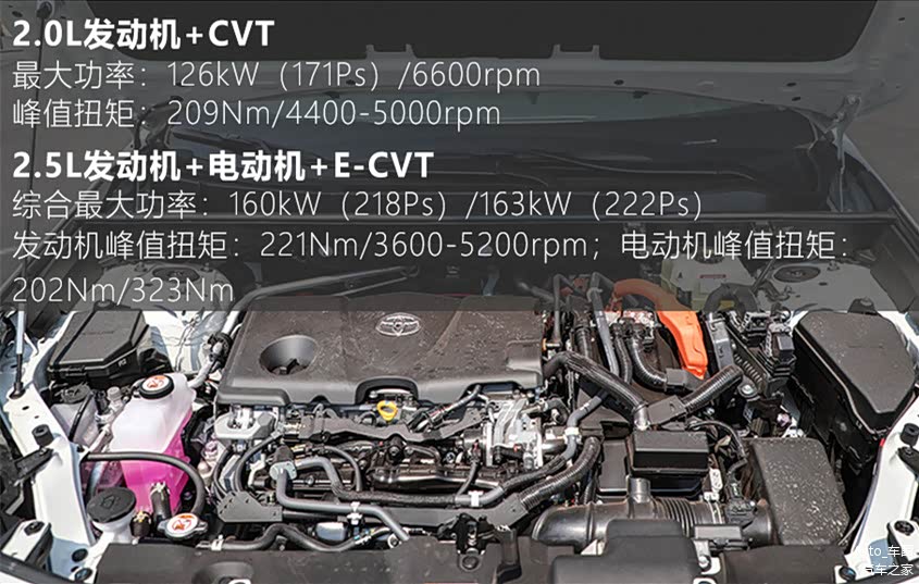 传动部分,匹配可模拟10速的CVT变速箱。后者系统综合功率163kW(222Ps),匹配E-CVT变速箱,官方公布的百公里综合油耗为4.6L。