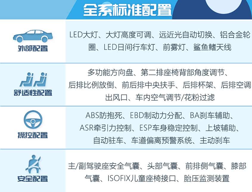 全系标配7个安全气囊,的确是同级别少有。除此之外,LED大灯、带车道保持和全速自适应巡航的TSS 2.0智行安全技术系统更是起到了锦上添花的作用。得到这一切只需17.48万元,这波不亏。