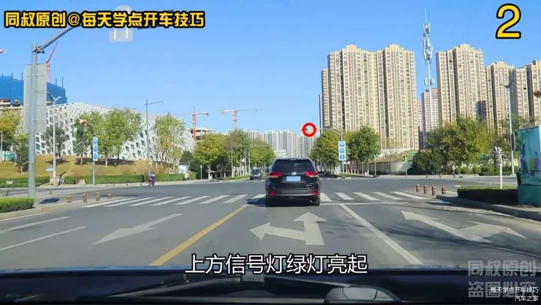就在即将停车时,上方信号灯绿灯亮起,前车快速起步左转弯,我随即松了一下刹车,让车辆保持慢行,待前车左转完毕后点油门提速过路口。
