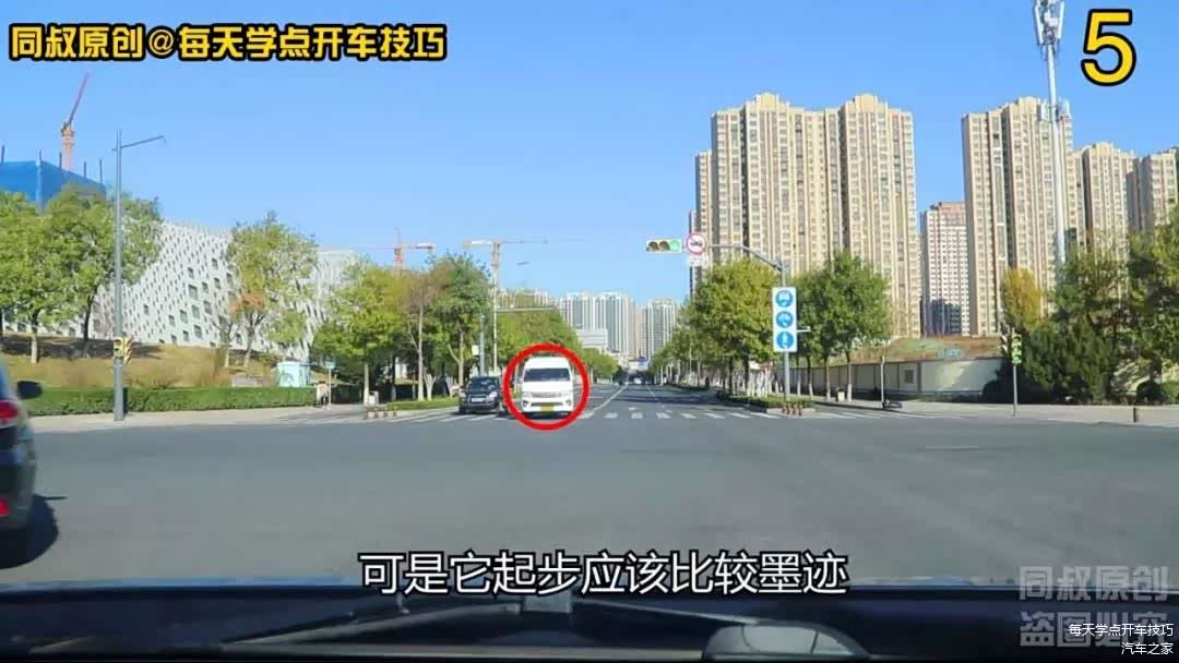 其实它这样做没有多大意思,它能够通过的概率比较低,除非遇到新手司机对车距判断不太准,不敢往前跑,路口起步速度也不快,可能会给它可乘之机。事实上这辆面包车司机在信号灯绿灯亮起的时候是有机会第一时间左转的,可是它起步应该比较墨迹,我方排第一的车辆已经完成左转了,他才刚起步的。