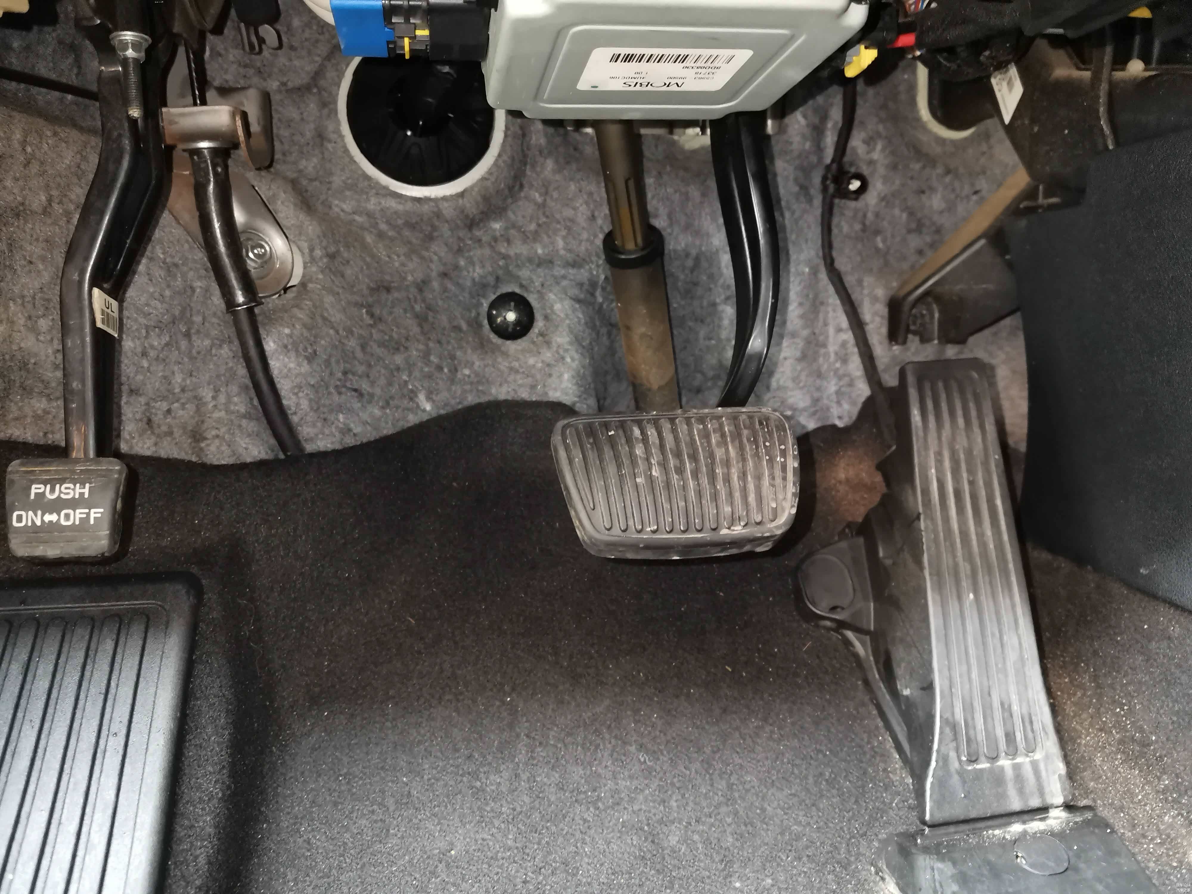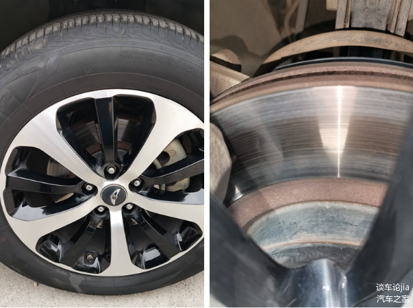 轮胎为原厂胎,刹车盘刹车片无拆卸更换,整体磨损情况符合表显4.6万公里左右的行驶里程,结合内饰的磨损情况,可以排除这辆车的调表嫌疑。
