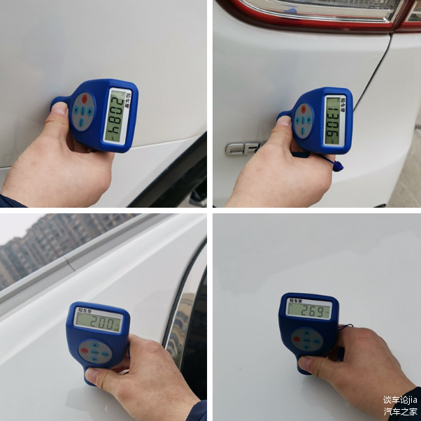 接下来开始用仪器测漆面数值,经检测发现后备盖和右后叶子板有过钣金的情况,其中右后翼子板数值达到了2000μm以上。