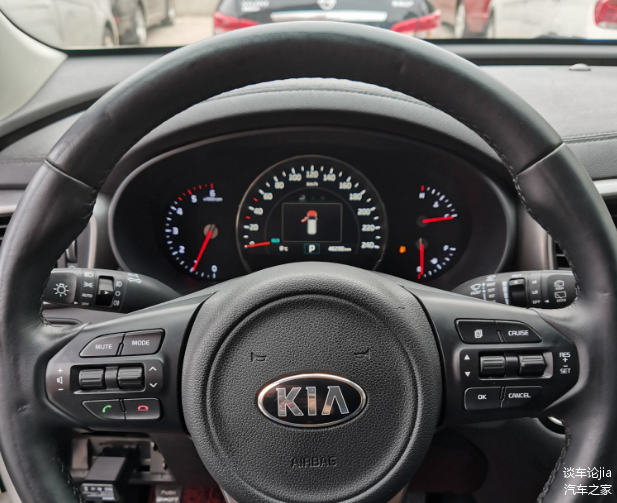 接着进行内饰检测,这款索兰托内饰给我的第一印象就是朴实无华,方正的中控台,圆滑的过度线条。只有这粗大的三幅式方向盘,显得很有力量感。这辆车内饰整体干净整洁,无明显异味。