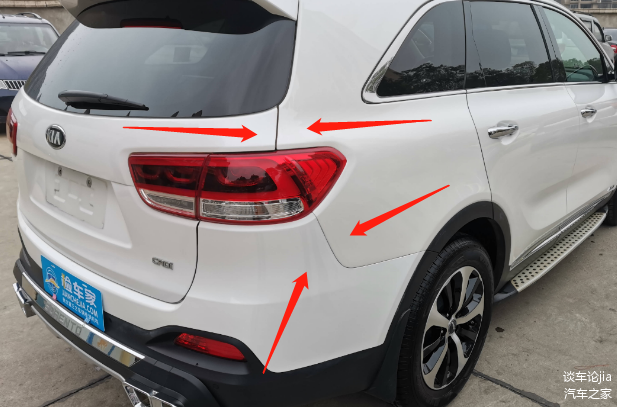 话不多说,马上着手开始今天的检测。首先围绕车身一周,发现这辆车后部有明显的色差现象,后保险杠和后备箱盖与翼子板颜色不一致,后保险杠边缘处有二次喷漆的痕迹。