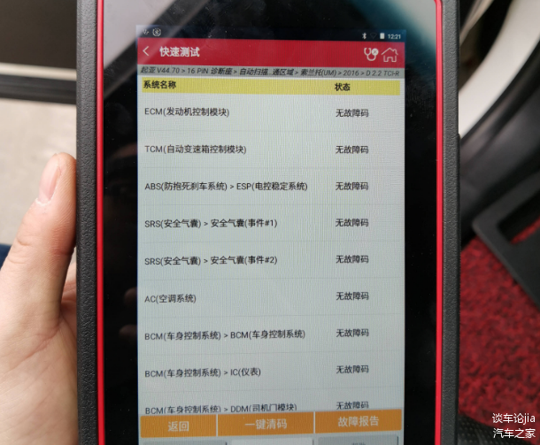 路试完成后来到附件的合作修理厂,进行OBD电脑检测,结果显示这辆车无任何故障码存在。
