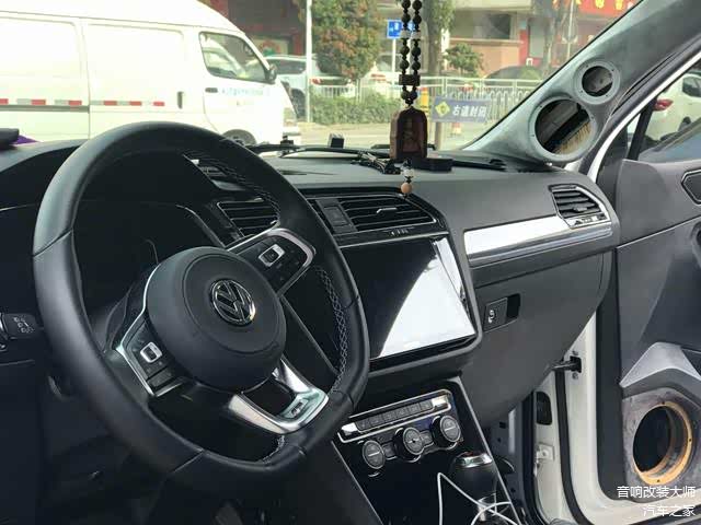 途观L哪怕是一款比较高档次的中型SUV,但是在经过前声场三分频,后声场意大利STEG史泰格大众专用喇叭,各色氛围灯等的折腾,原车原厂的主机实在也是有点吃不消。