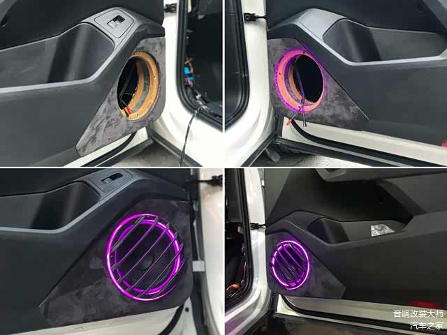 在硬件完善之后,前声场中的三分频氛围灯效果显是出来,可见其足够炫酷!