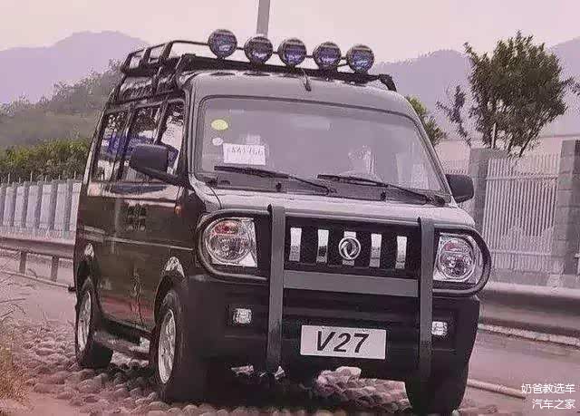 可以说是国产首款配备四驱系统的面包车,外观采用绿色涂装有点军车的感觉,悬挂要比常规面包车更长,前脸线条棱角分明搭配粗壮的防撞板看上去有点越野车感觉,还有车顶行李架和爬梯,动力上搭载1.3L自然吸气发动机,最大马力95匹,最大扭矩102牛•米,传动系统与之匹配的是5速手动变速箱,配备分时四驱,操作比较麻烦,需要先选择四驱模式再手动将设置在两前轮的锁闭旋钮锁死,就可以达到四驱模式了。现在想买只能去二手车市场碰碰运气了。