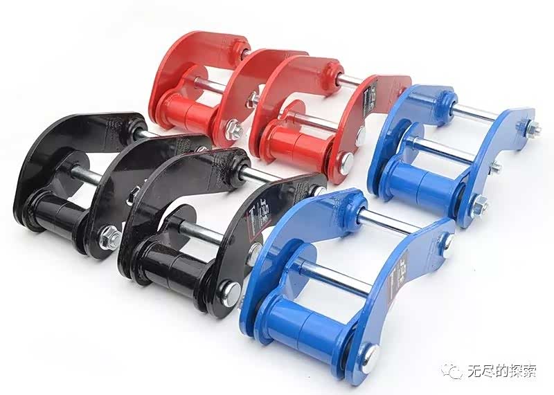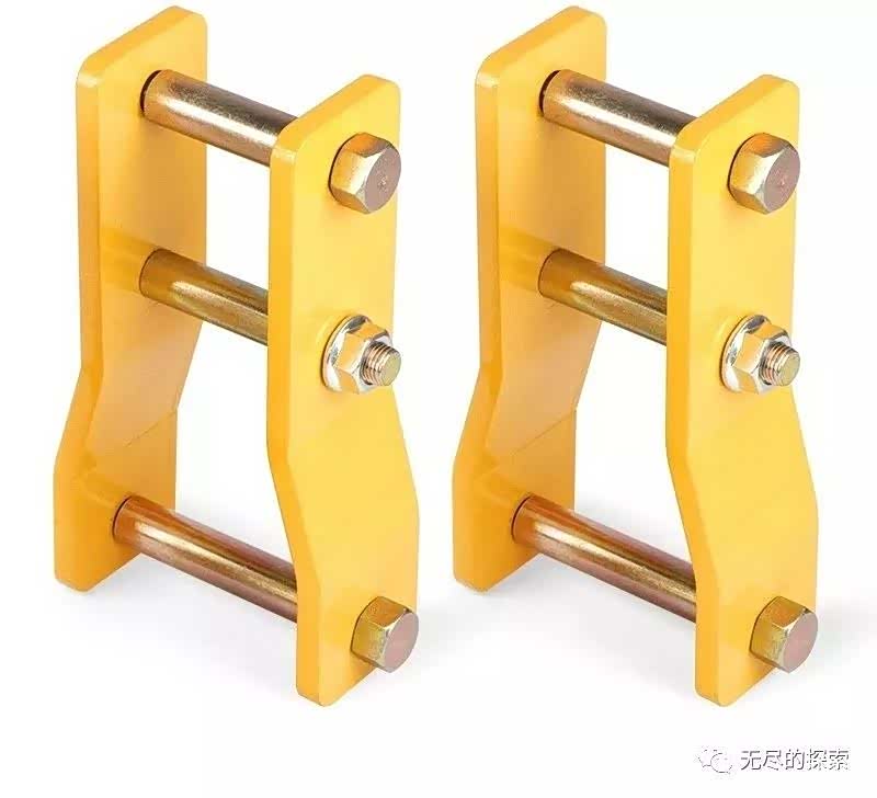 普通加长吊耳:其实就是延长了钢板的连接座高度,也就等于把车辆进行了升高,它同时还会改变传动轴的输入角度;升高的吊耳长度按自己需求购买即可,一般采用的加长吊耳不宜超过 2 吋升高,因为吊耳长度如果过高会容易产生很多问题,主要是以下几方面;