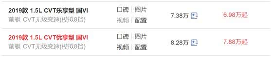 新车共推出两款车型,售价7.38—8.28万元。最大的变化在于搭载了一台全新的CVT变速箱,同时排放升级,符合国六标准。它所搭载的1.5L自然吸气发动机最大功率105马力,最大扭矩135牛米,工信部油耗百公里仅6.6升。