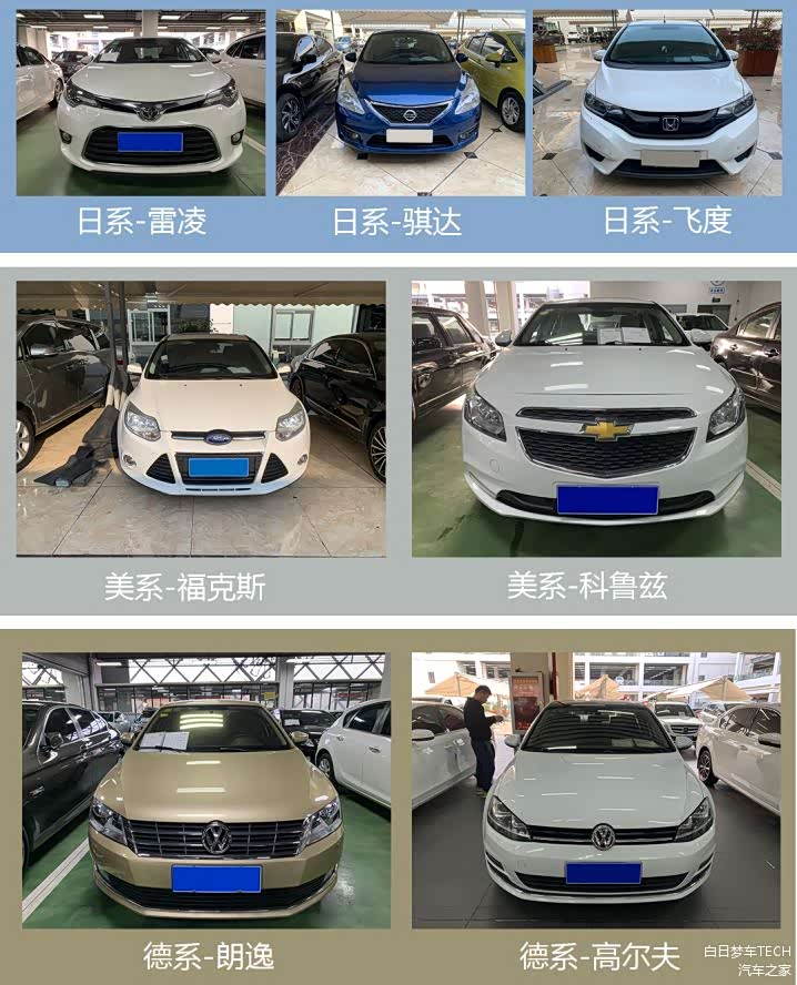 接下来,我们带着设备,放下面子,去二手车市场找了几台市面上保有量最大的车型进行测量。由于时间和场地的限制,我们在选取车辆时的标准有几个: