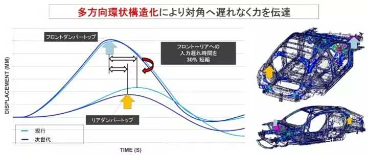 再从另一家宅男日企看,马自达的创驰蓝天架构里,也是通过结构的优化来提升整车的钢性,并采用新的高强度材料来加强局部碰撞位置的强度。