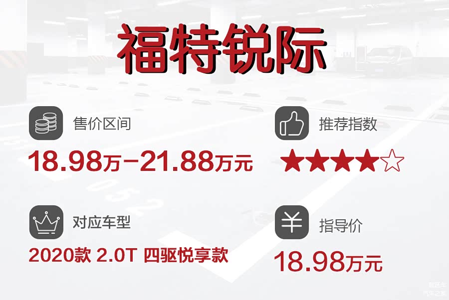 锐际是长安福特“加速计划”下的首款全新车型,先期虽然仅上市3款车型,但是动力部分均为2.0T+8AT+四驱的设定。再考虑到其不足20万的起售价,竞争实力不容小觑。外观部分,福特锐际的前脸较为圆润与饱满。内凹式的车身侧面线条、双边共双出的排气设计以及敦实的尾部造型等,均凸显出强烈的运动气质。此外,除了普通版外,福特锐际还提供ST-Line车型供选择。