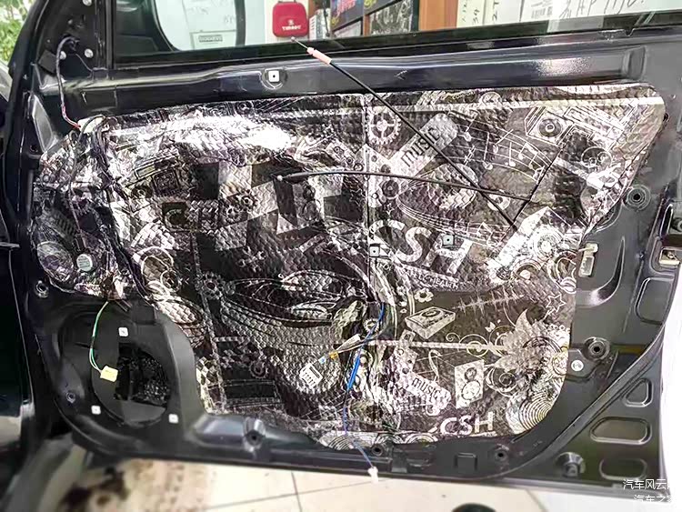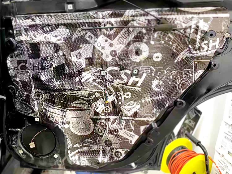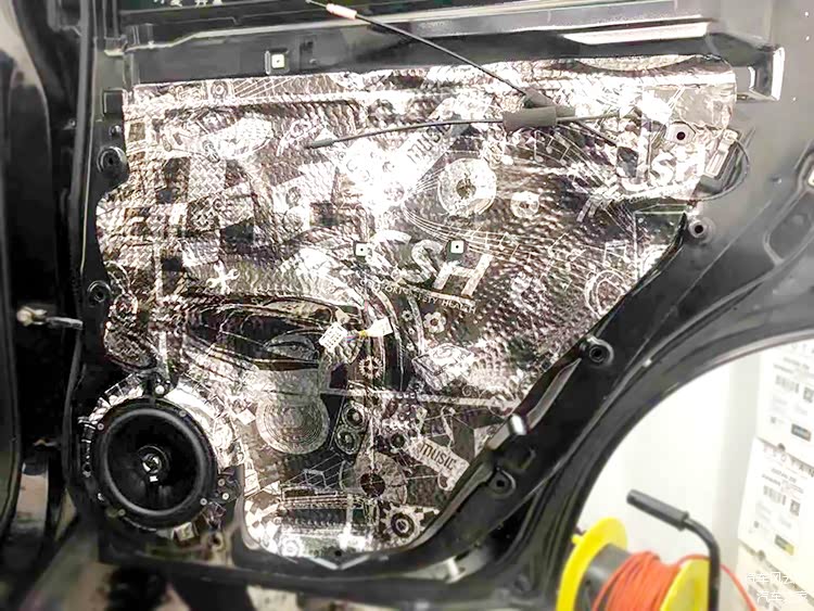 针对原车隔音措施欠缺的门板,哈尔滨小蒋汽车音响师傅_使用俄罗斯STP隔音材料进行了细致的隔音处理,拒绝风噪、门板自身共振噪声的同时,为喇叭提供一个良好的工作环境。