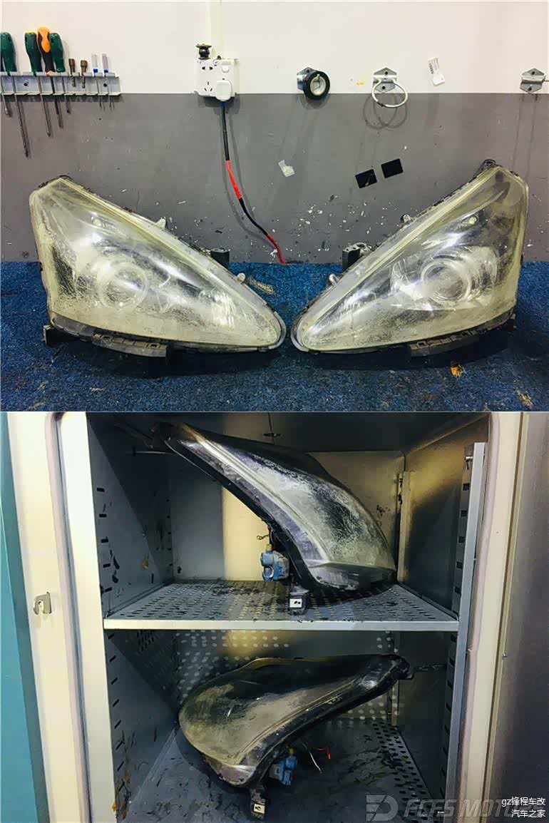 老规矩,大灯拆下后需要拿进施工车间把大灯加热,方面下一步的开灯工序。